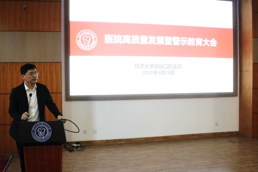 2024年5月29日,565net必赢客户端口腔医(学)院召开医院高质量发展暨警示教育大会,医院全体教职工参加了会议,会议由张磊副书记主持。